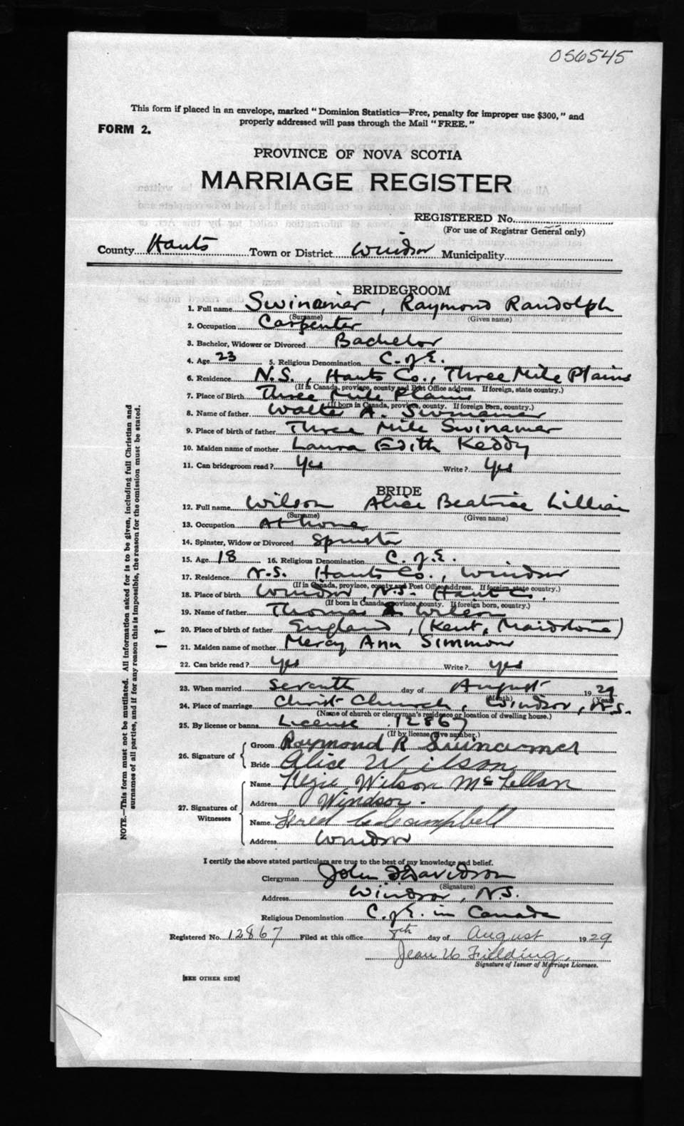 Registration: Year: 1929 number: 56545