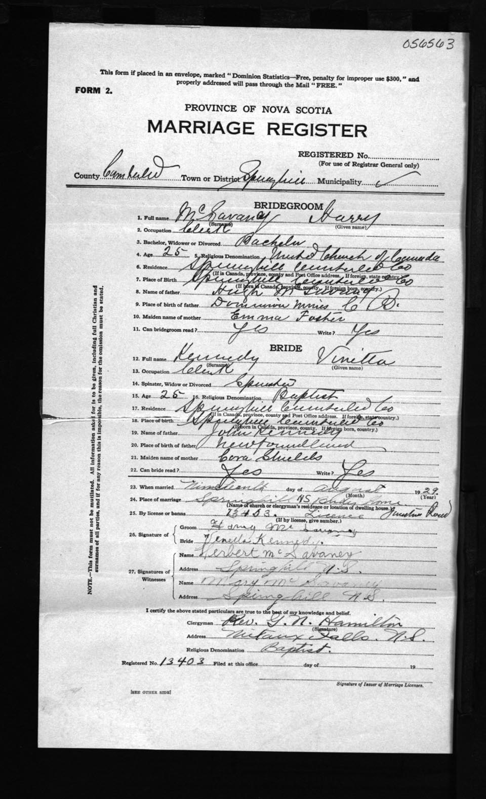 Registration: Year: 1929 number: 56563