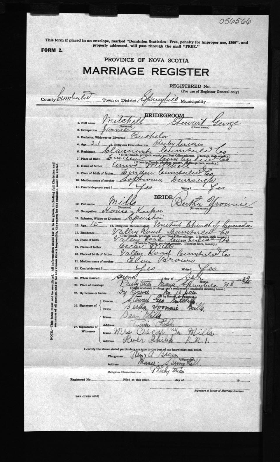 Registration: Year: 1929 number: 56566