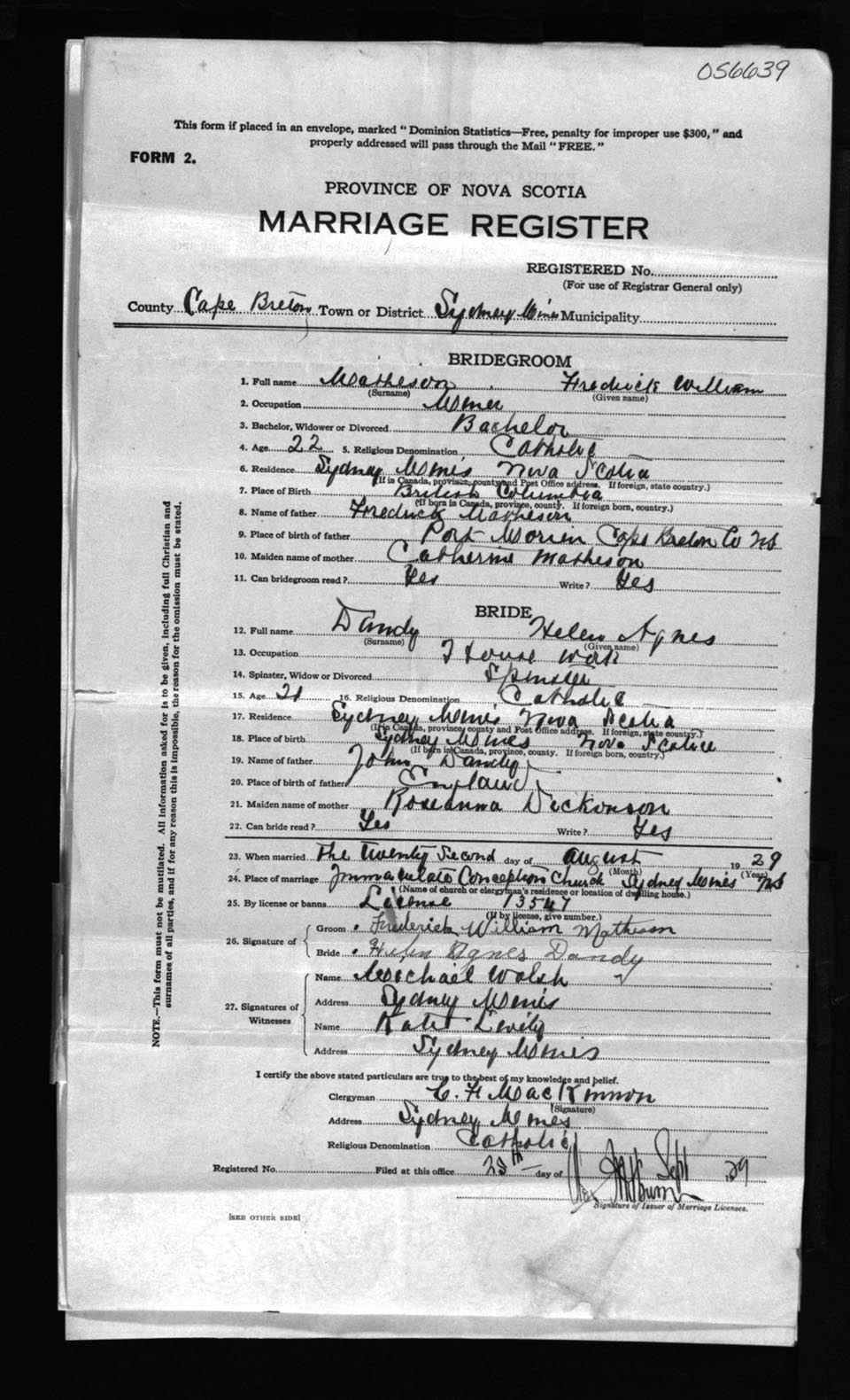 Registration: Year: 1929 number: 56639