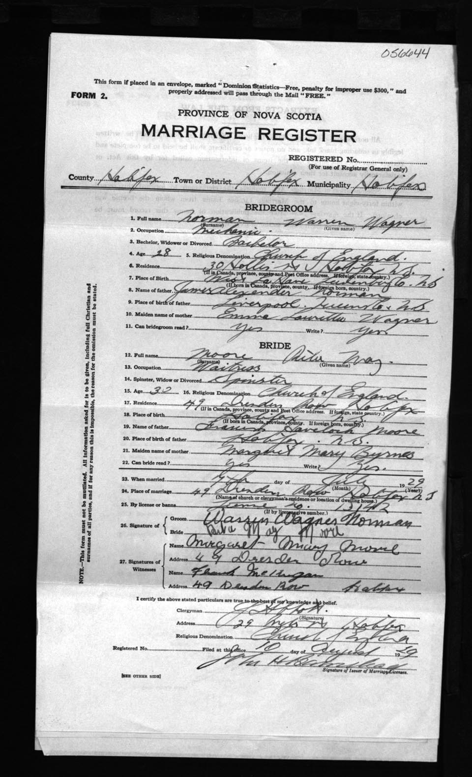 Registration: Year: 1929 number: 56644