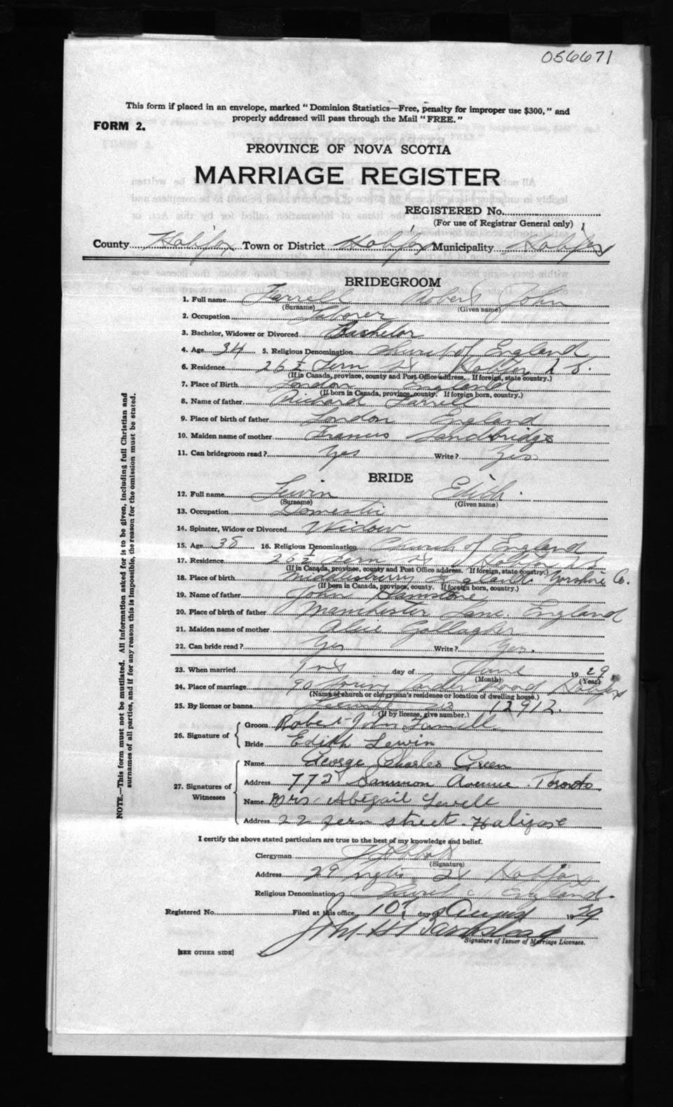 Registration: Year: 1929 number: 56671