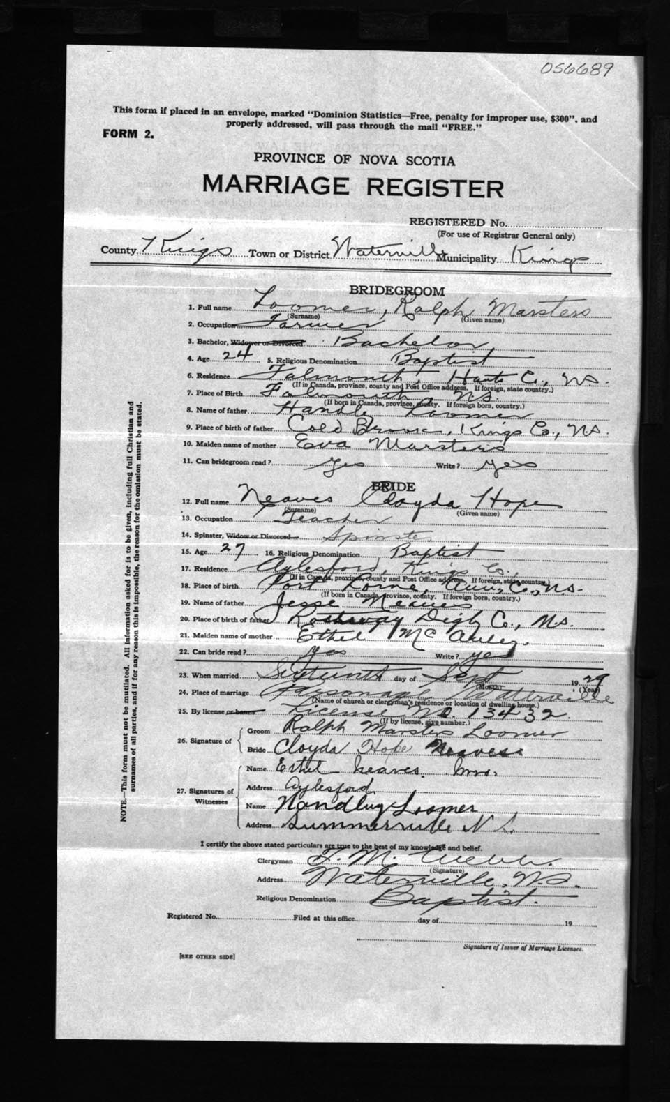 Registration: Year: 1929 number: 56689