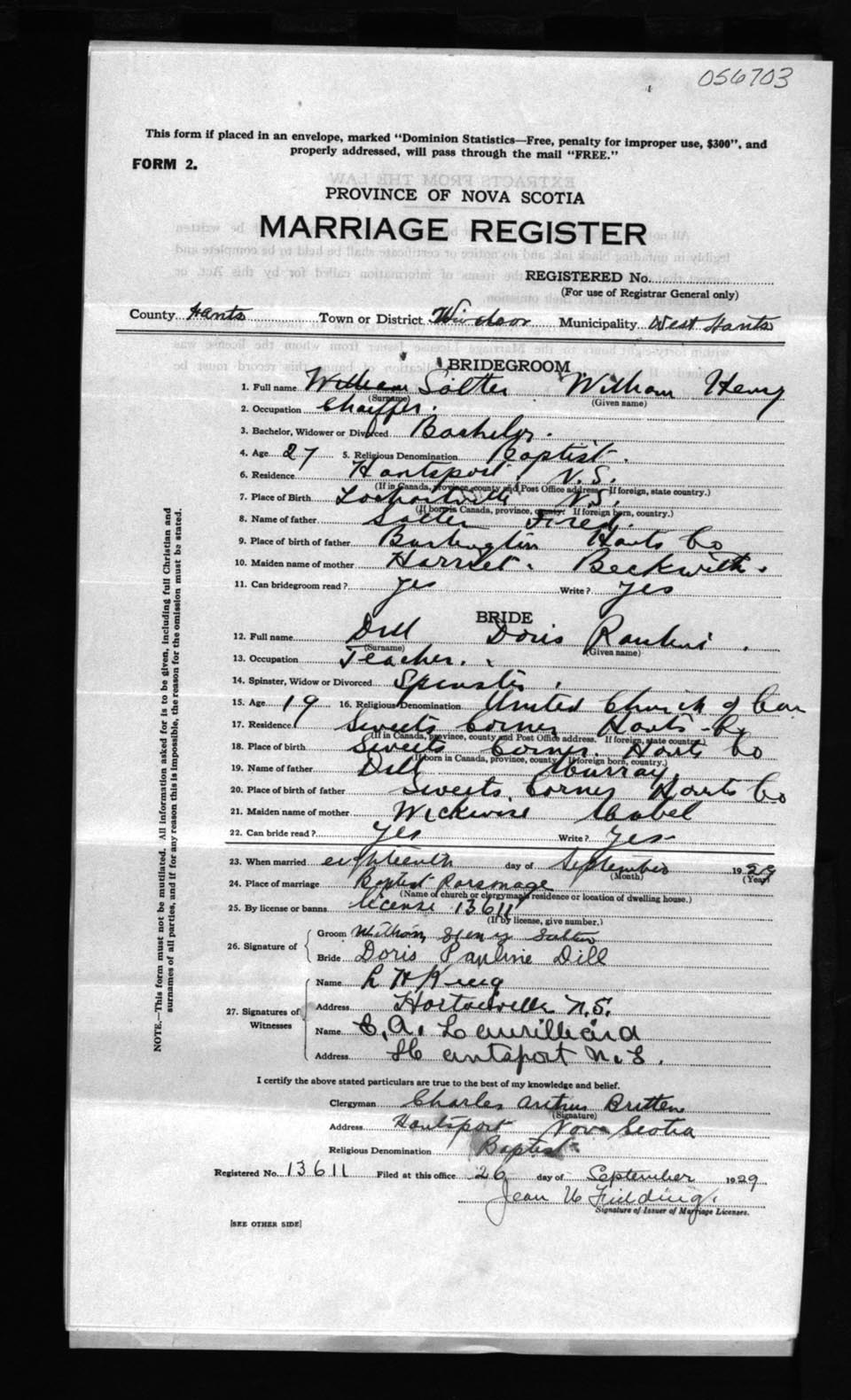 Registration: Year: 1929 number: 56703