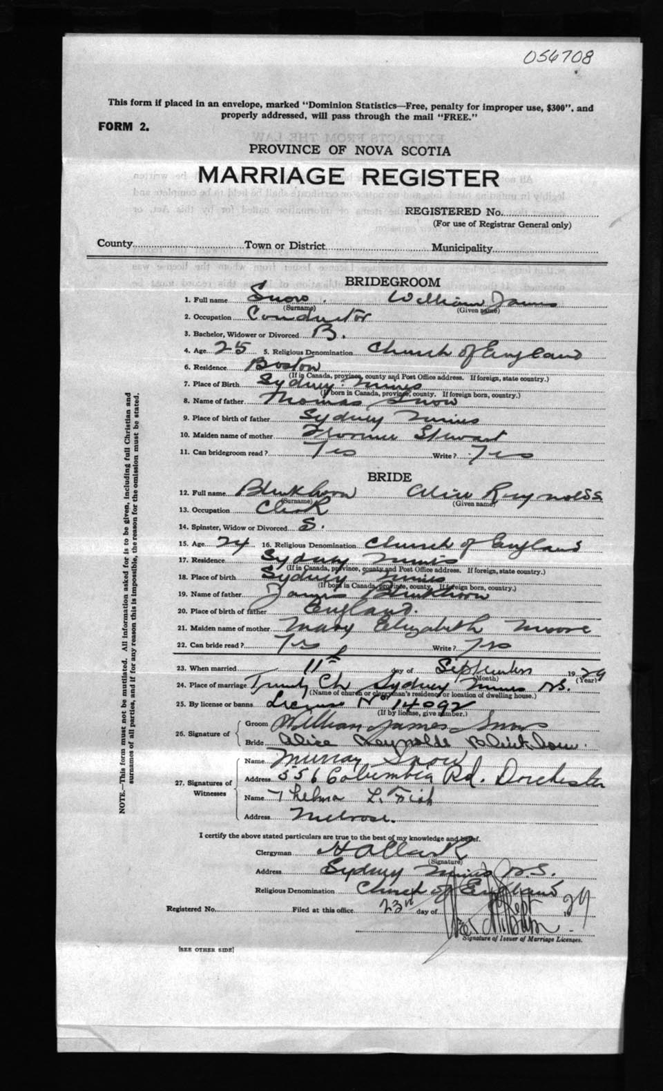 Registration: Year: 1929 number: 56708