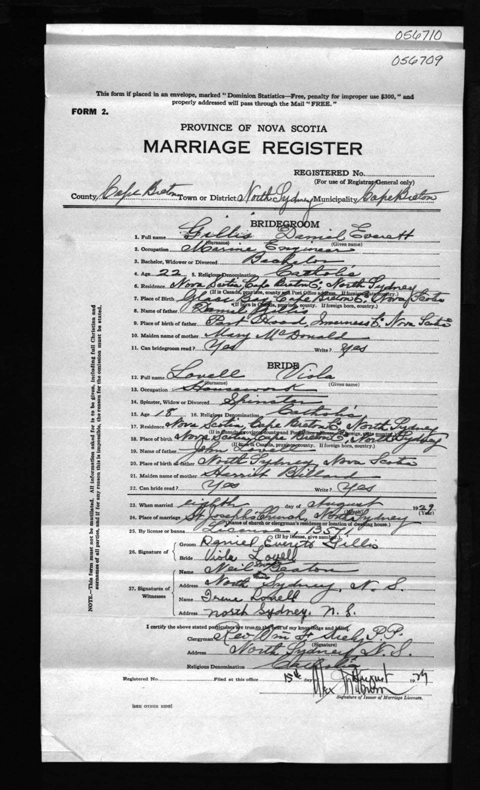 Registration: Year: 1929 number: 56709