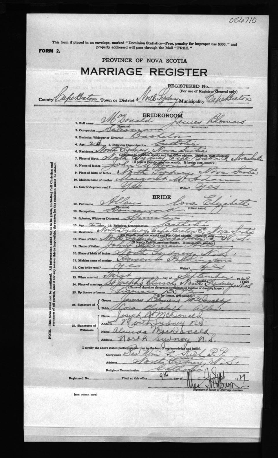 Registration: Year: 1929 number: 56710