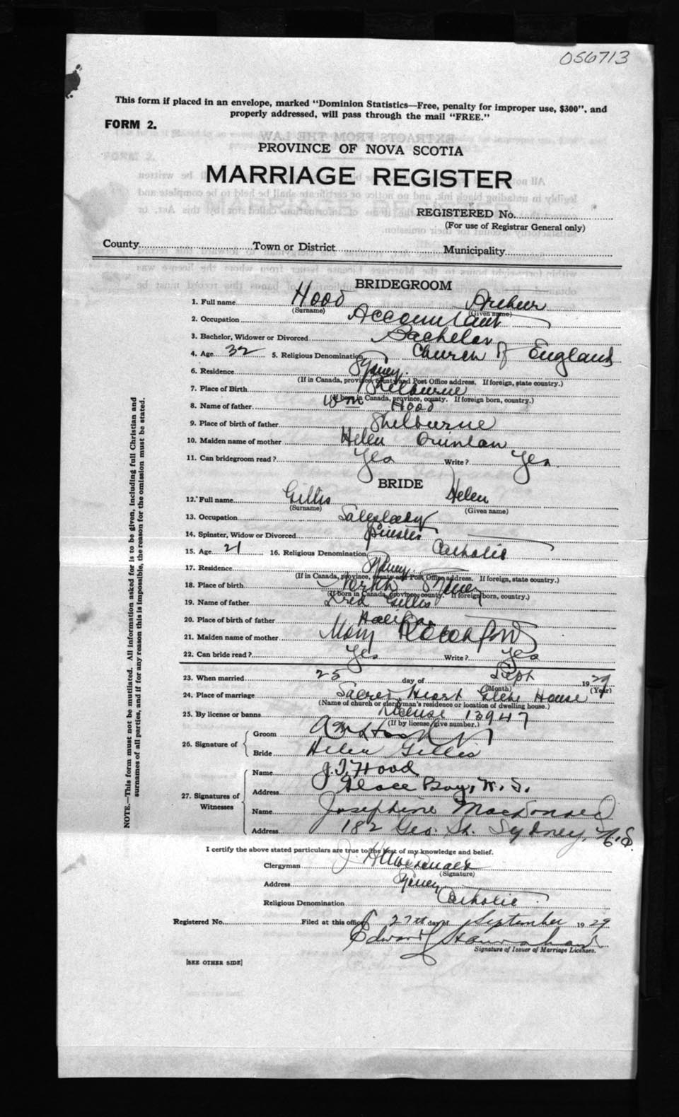 Registration: Year: 1929 number: 56713