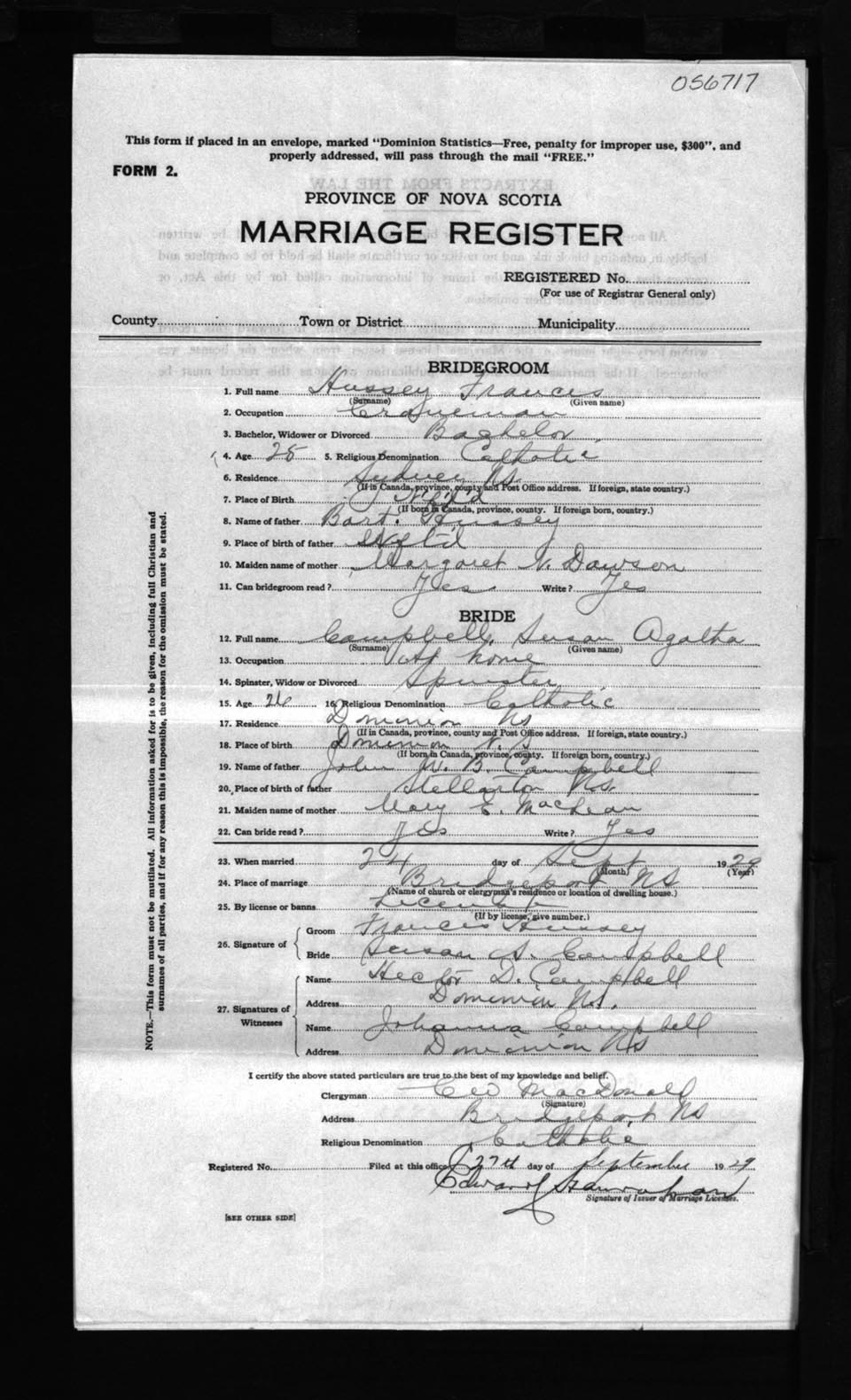 Registration: Year: 1929 number: 56717