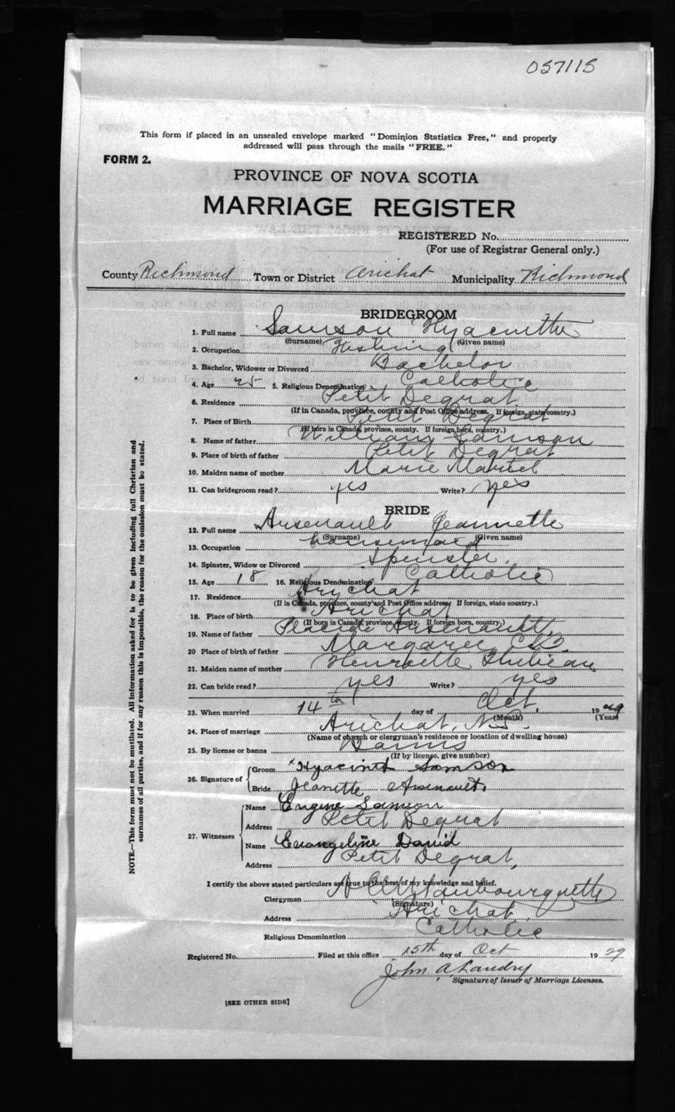 Registration: Year: 1929 number: 57115