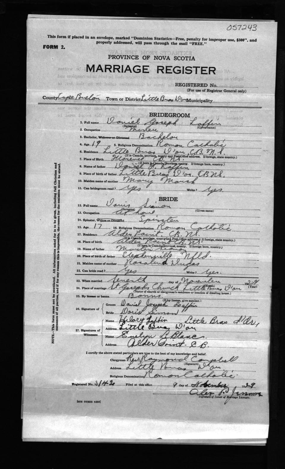 Registration: Year: 1929 number: 57243