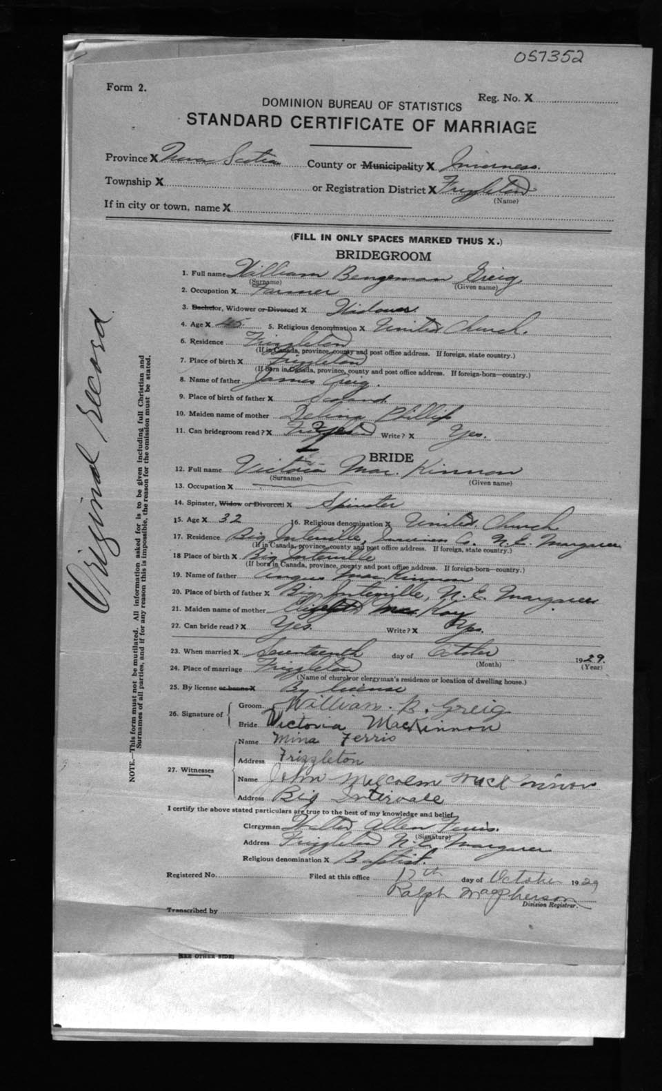 Registration: Year: 1929 number: 57352