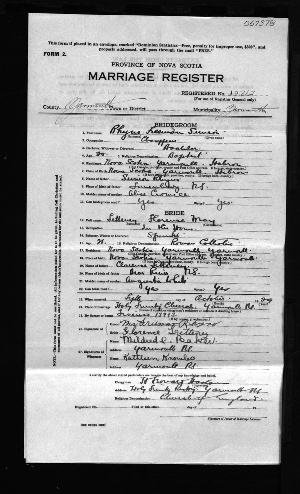 Registration: Year: 1929 number: 57378