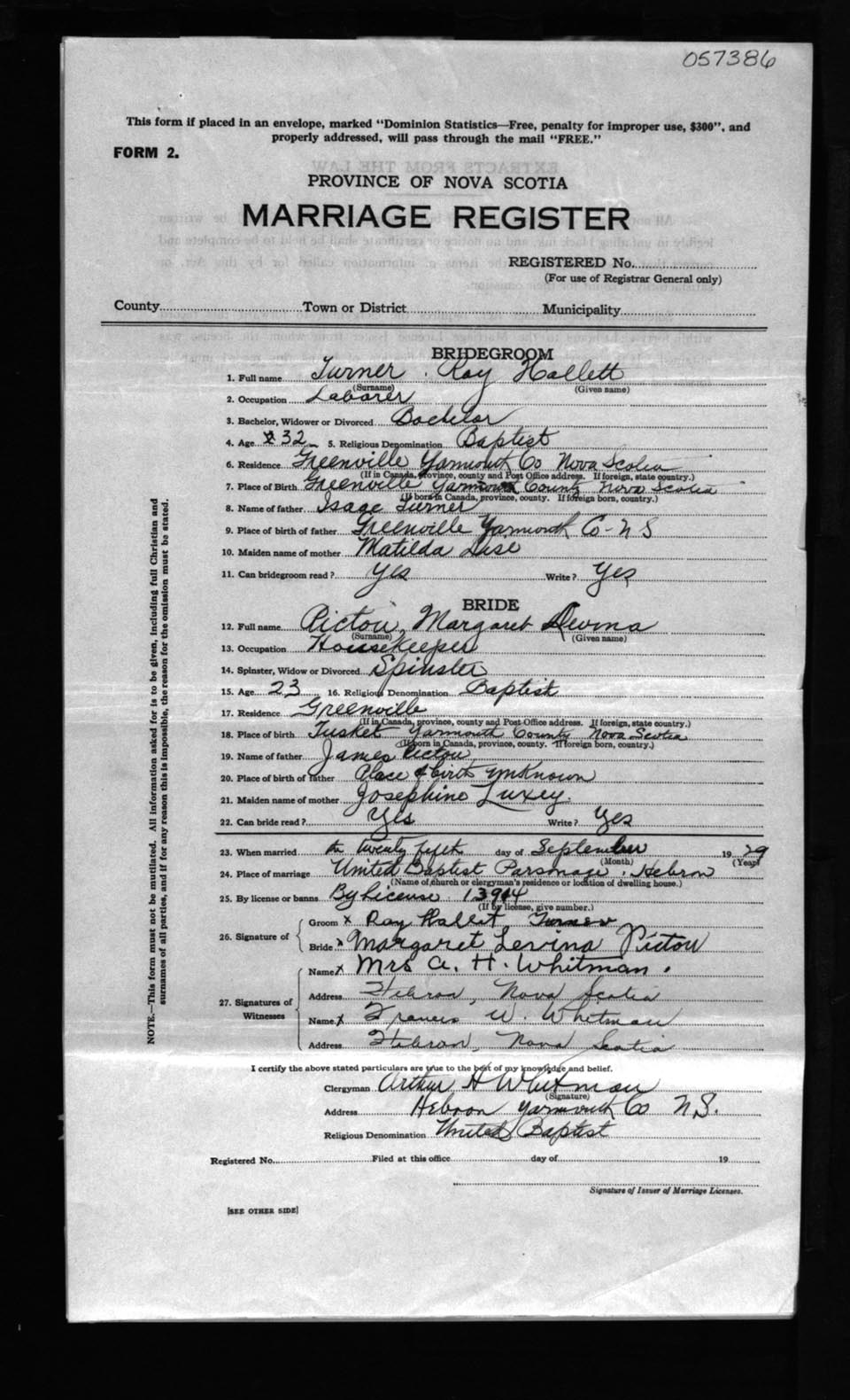 Registration: Year: 1929 number: 57386
