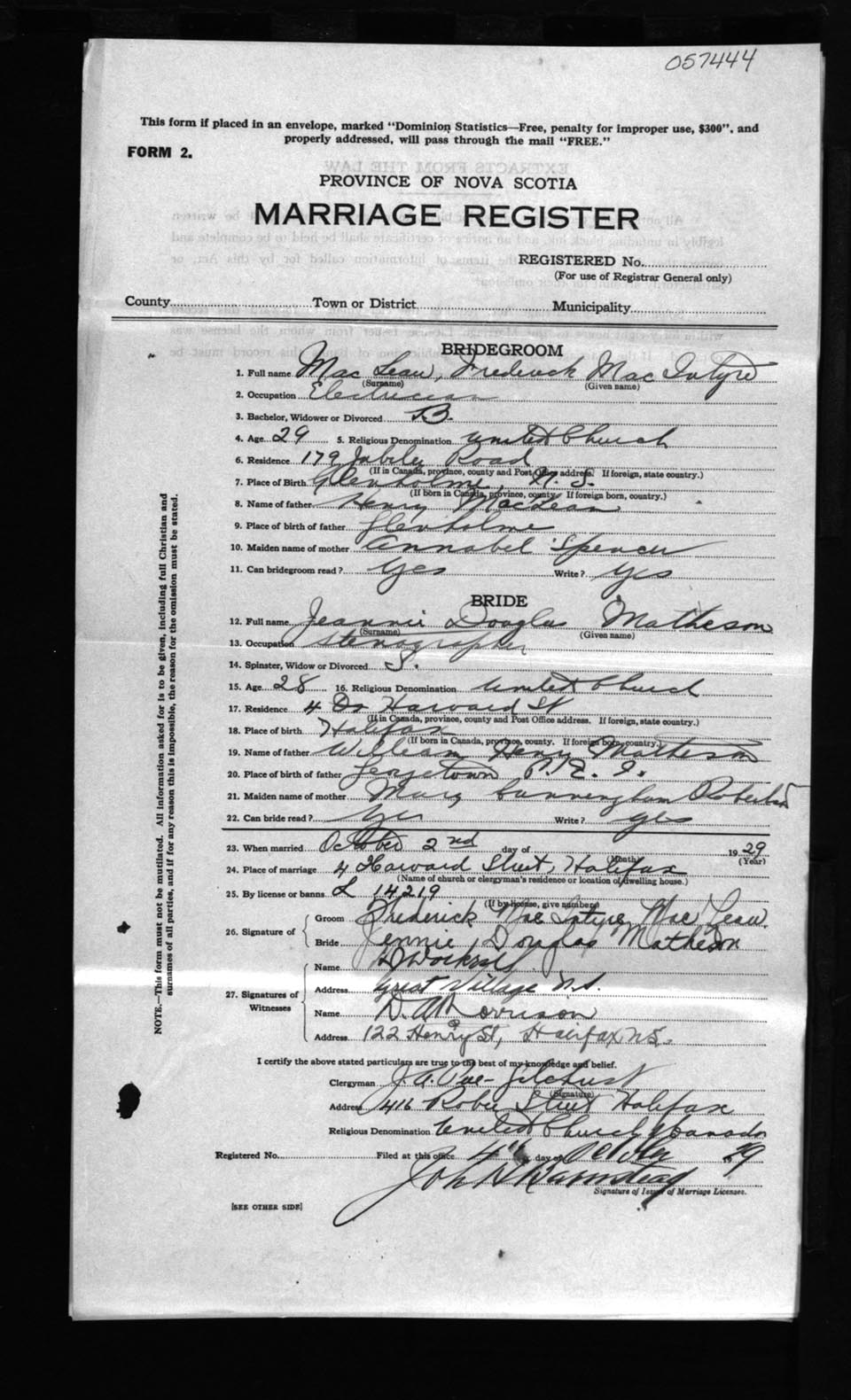 Registration: Year: 1929 number: 57444