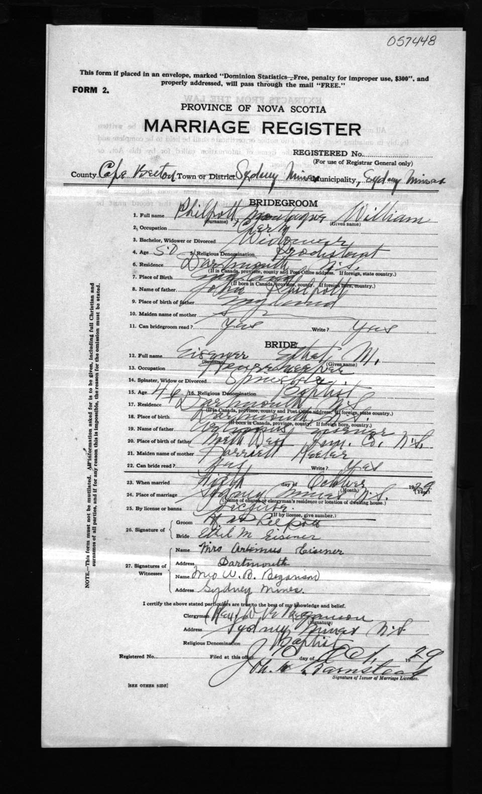 Registration: Year: 1929 number: 57448