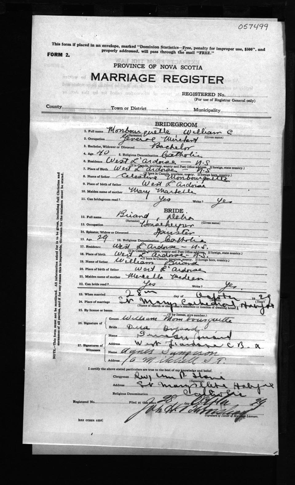 Registration: Year: 1929 number: 57499