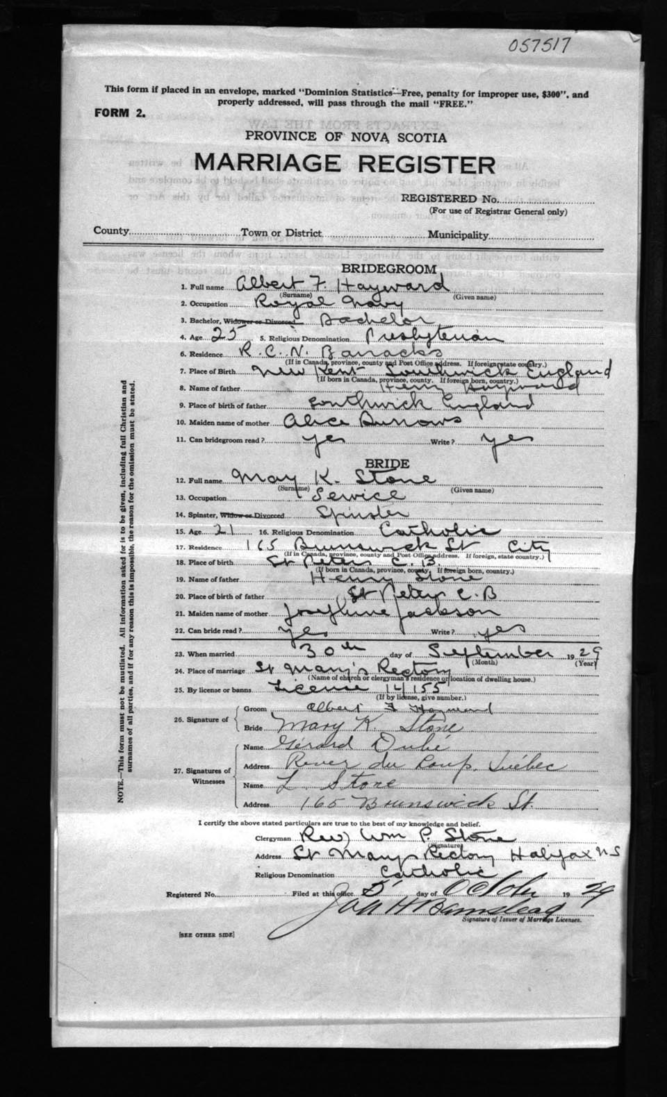 Registration: Year: 1929 number: 57517
