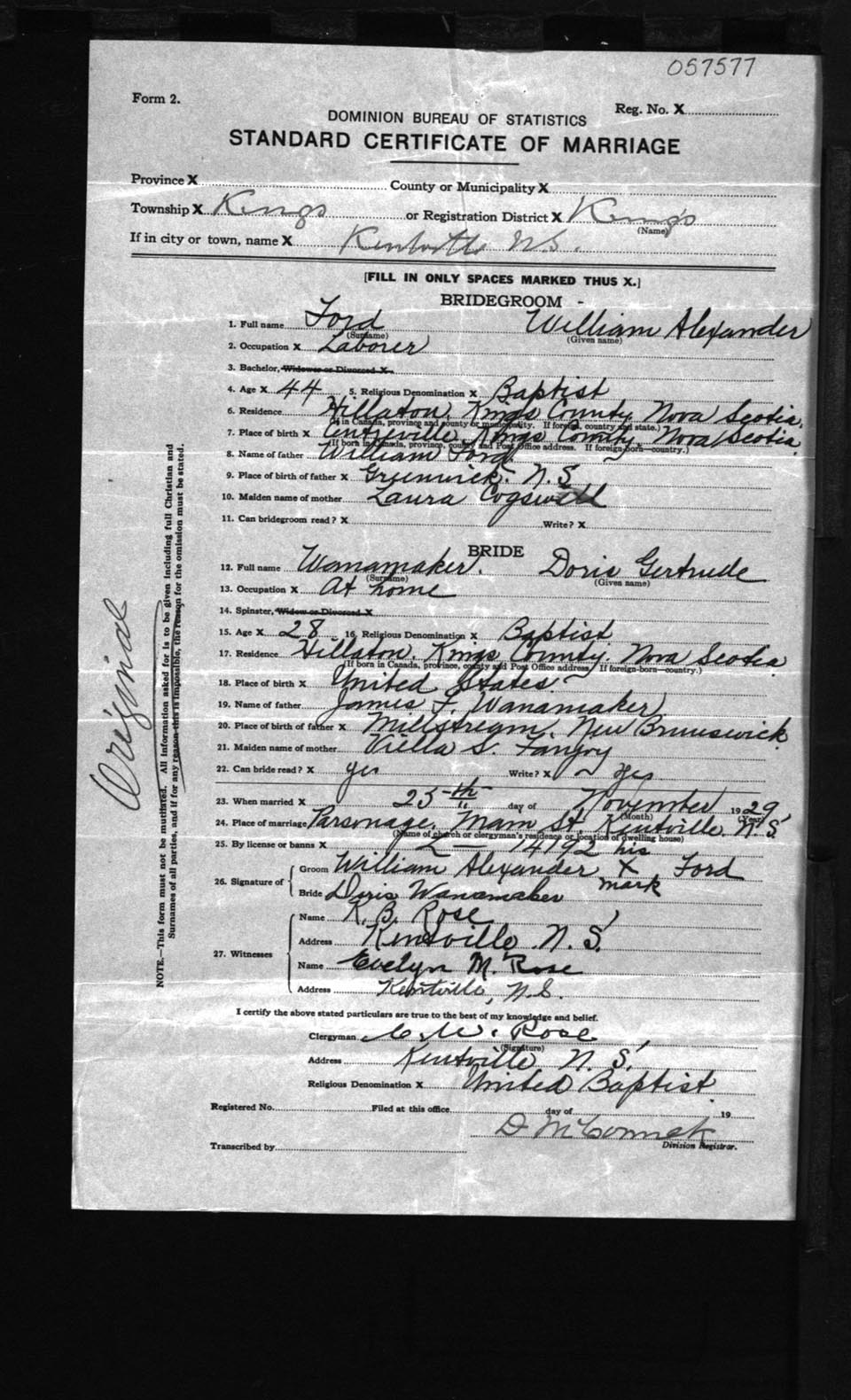Registration: Year: 1929 number: 57577