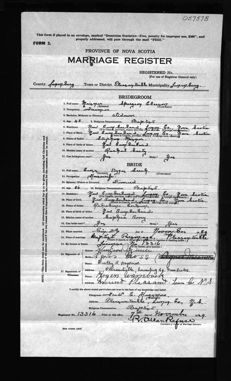 Registration: Year: 1929 number: 57578