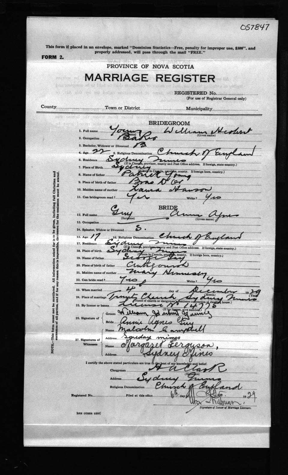 Registration: Year: 1929 number: 57847
