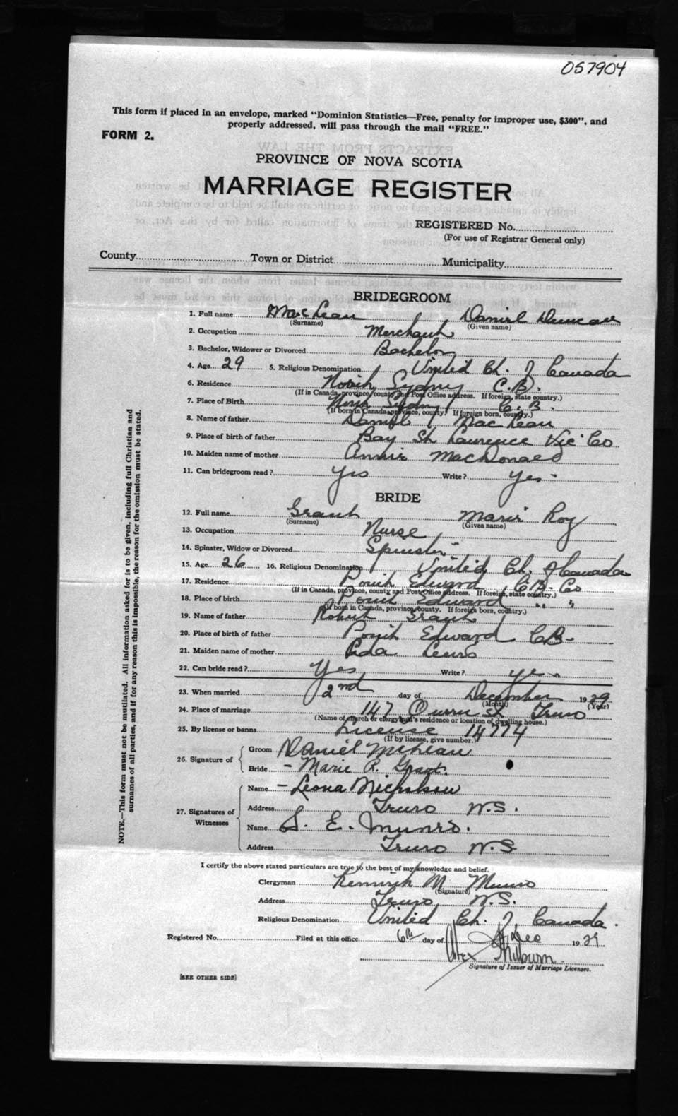 Registration: Year: 1929 number: 57904