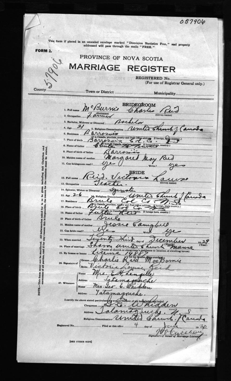 Registration: Year: 1929 number: 57906