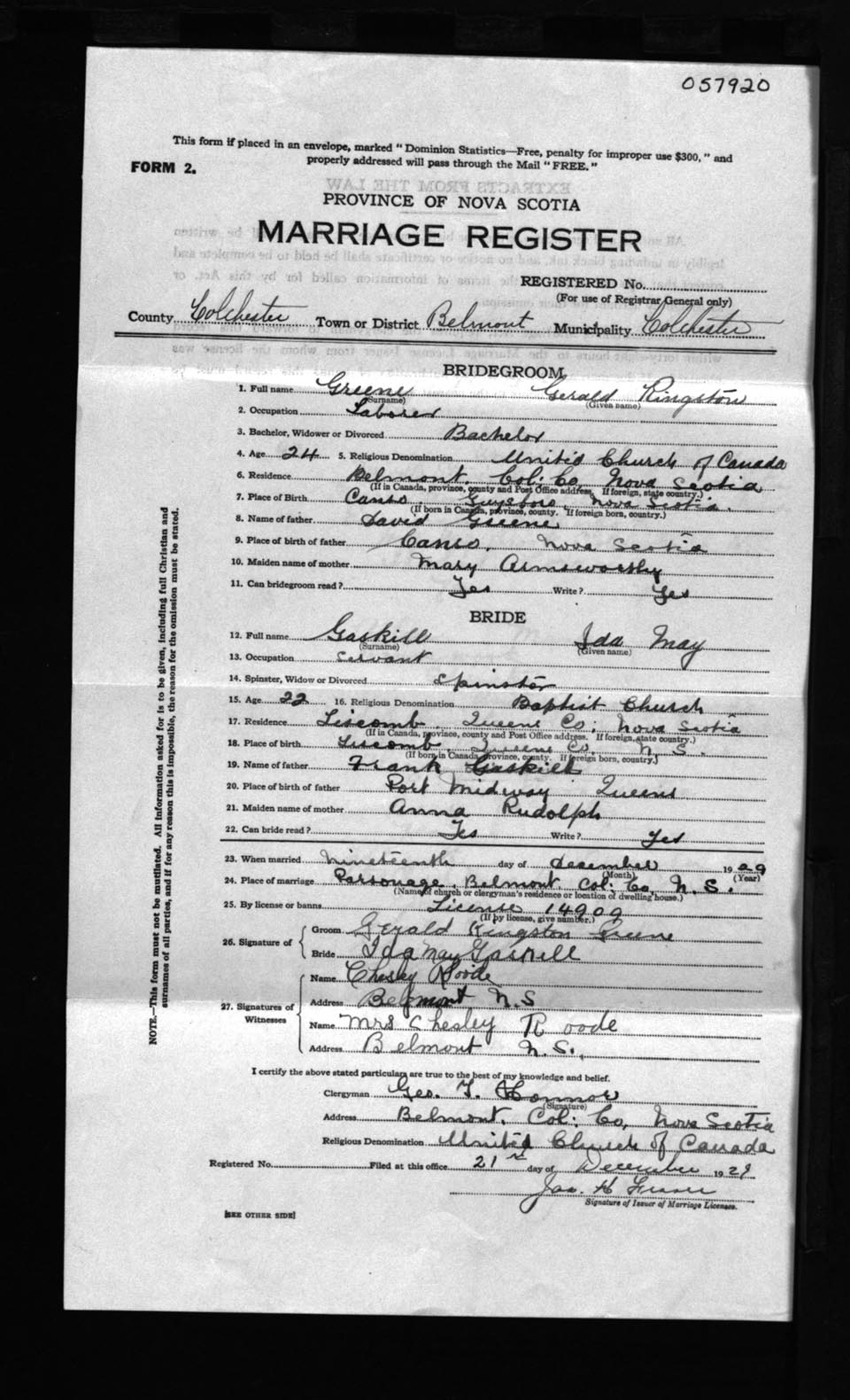 Registration: Year: 1929 number: 57920
