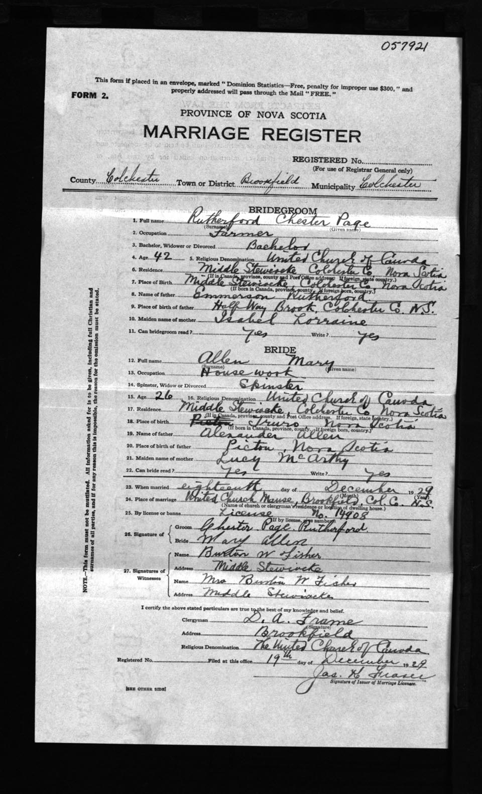 Registration: Year: 1929 number: 57921