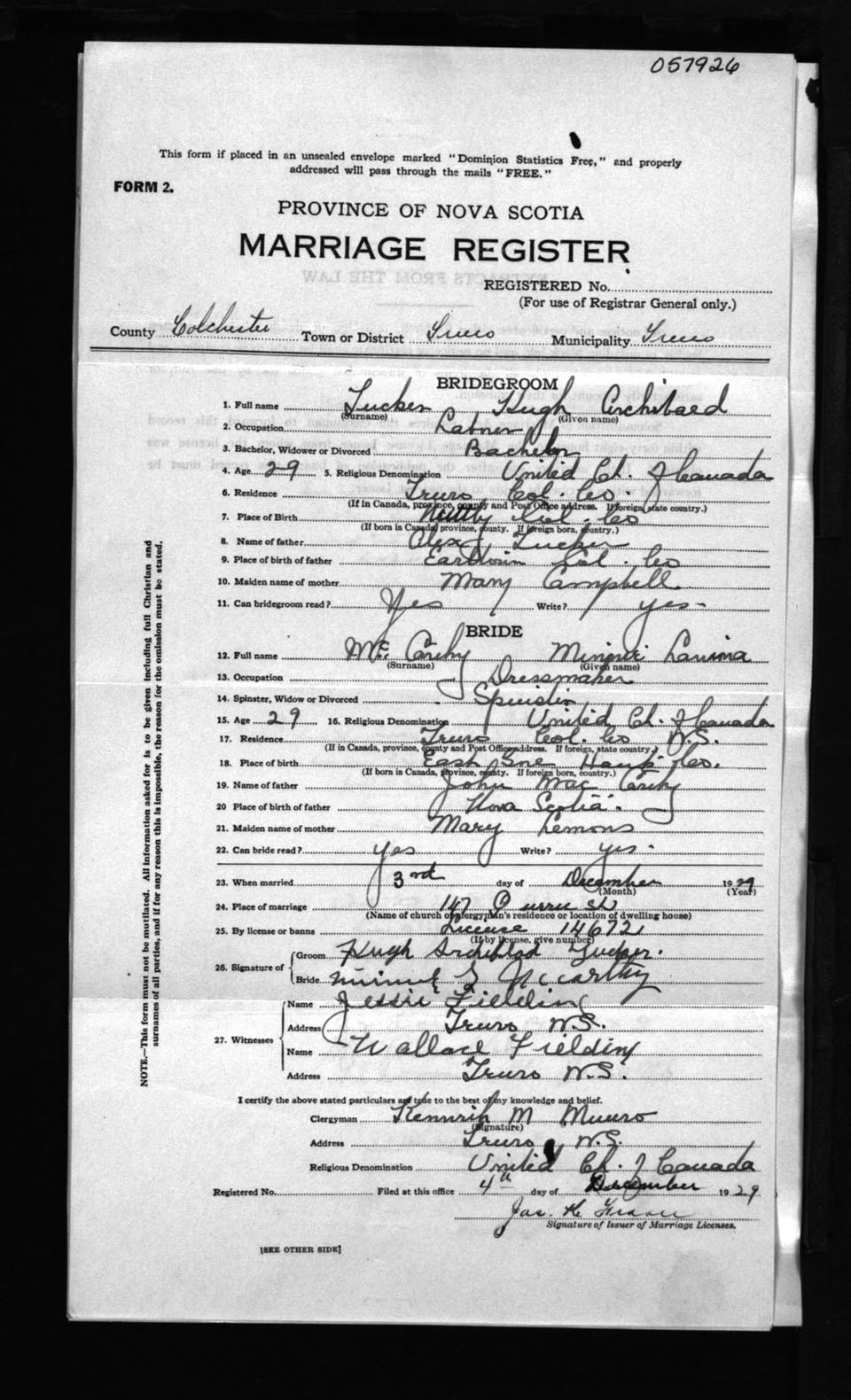 Registration: Year: 1929 number: 57926