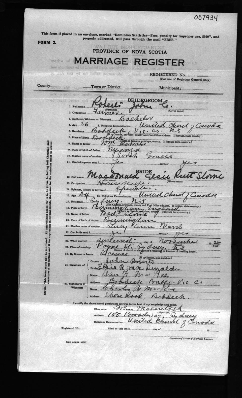 Registration: Year: 1929 number: 57934