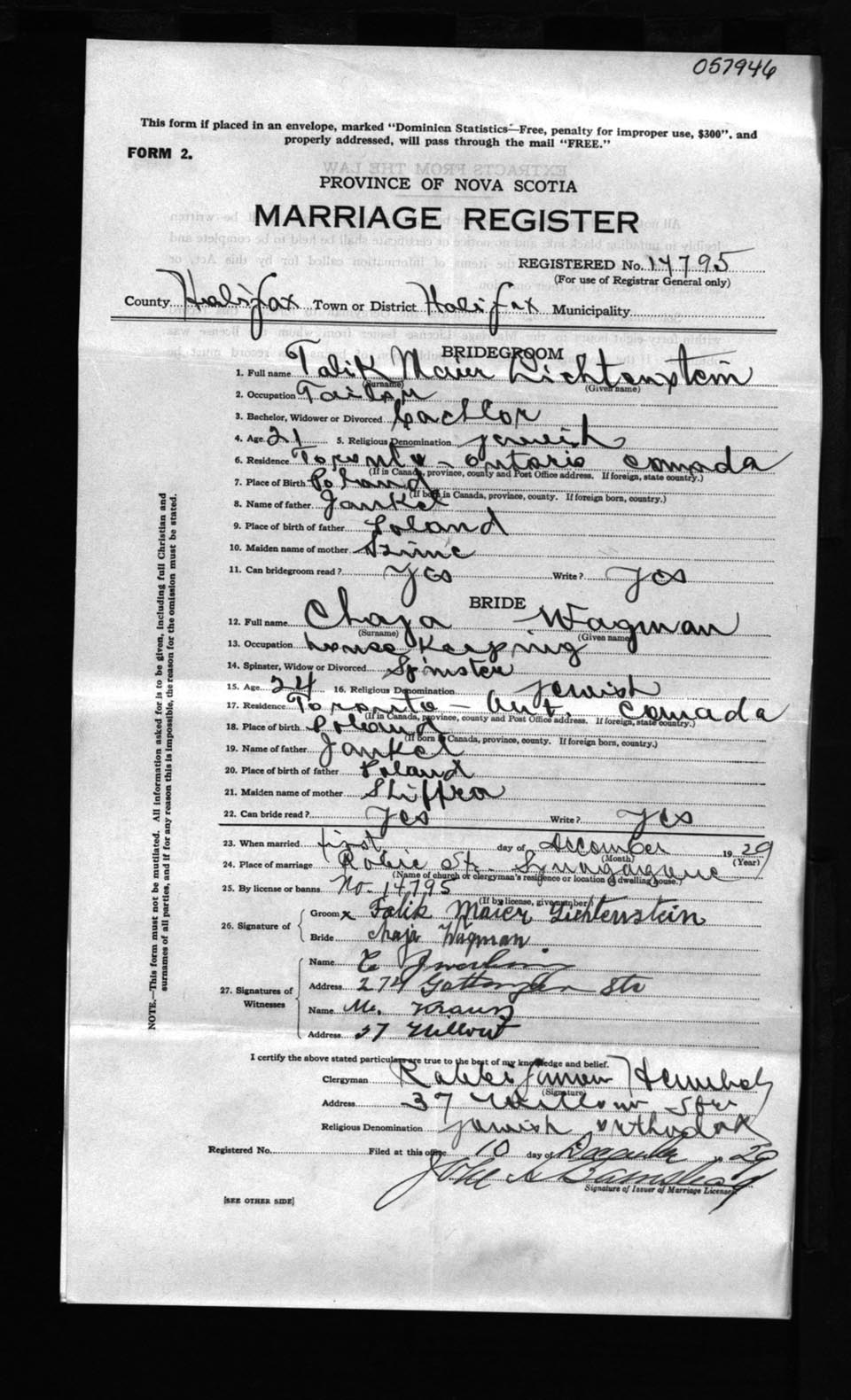 Registration: Year: 1929 number: 57946