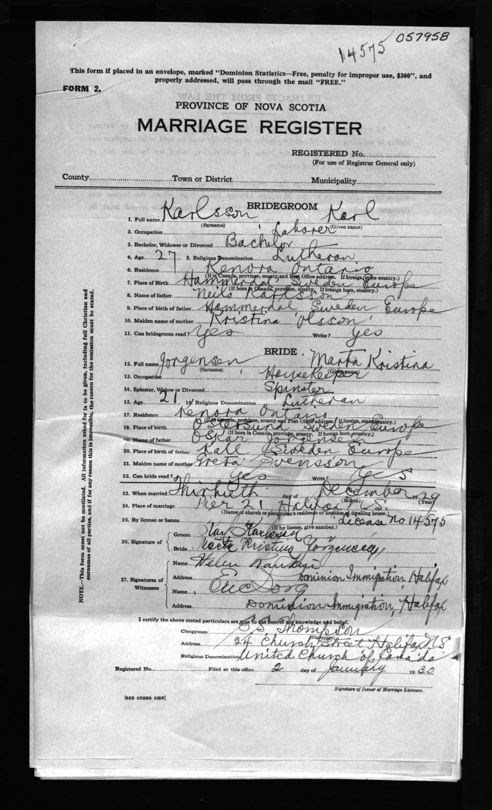 Registration: Year: 1929 number: 57958
