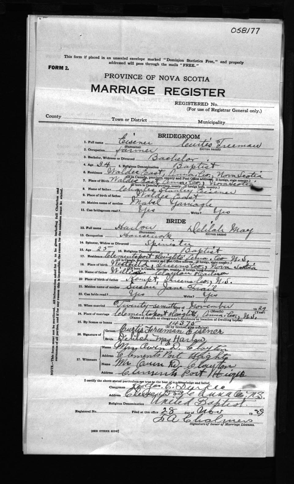 Registration: Year: 1929 number: 58177