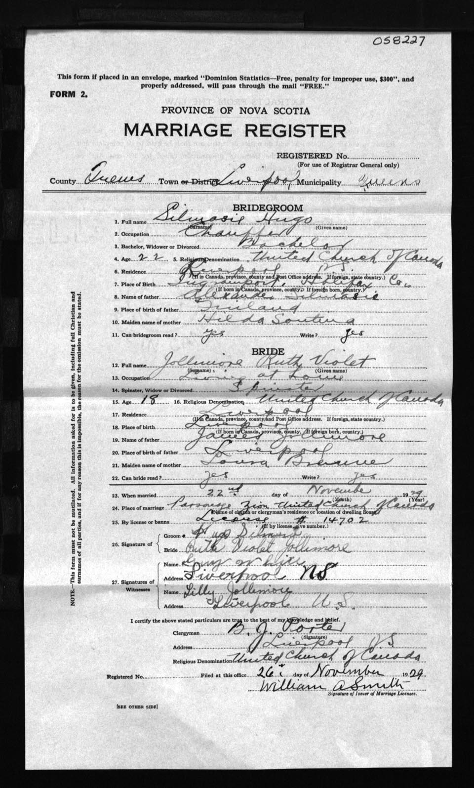 Registration: Year: 1929 number: 58227