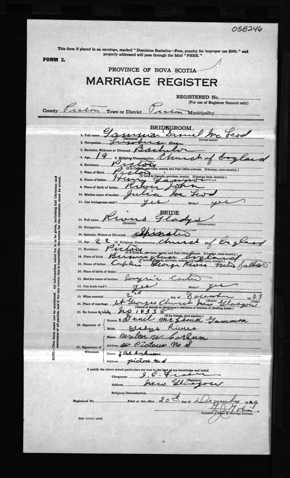 Registration: Year: 1929 number: 58246