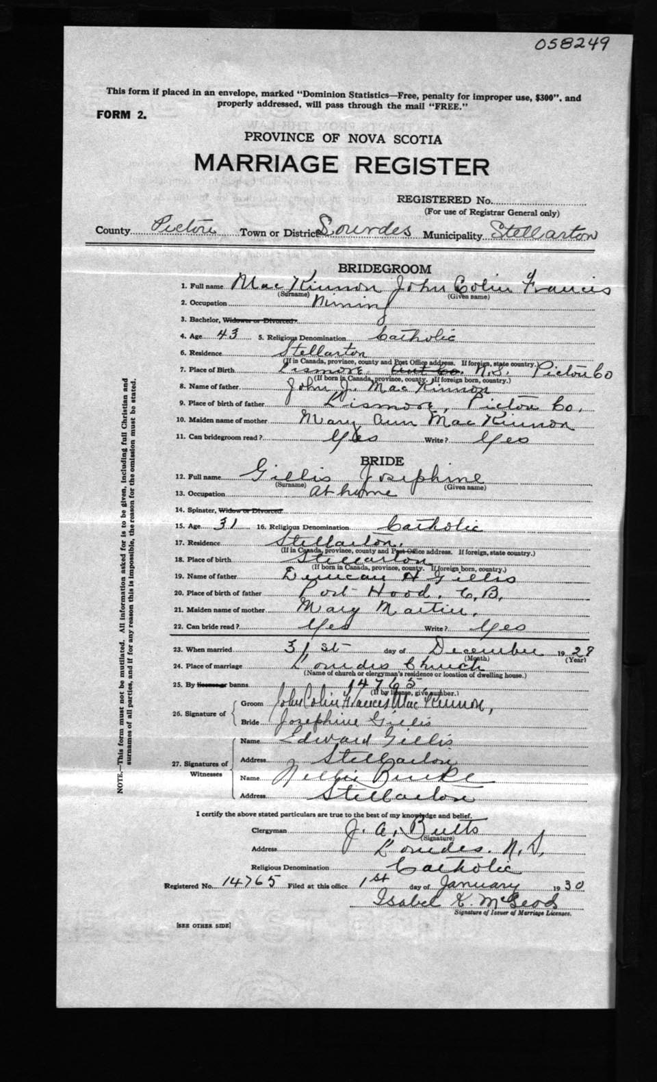 Registration: Year: 1929 number: 58249