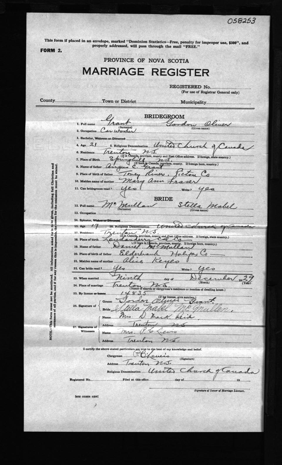 Registration: Year: 1929 number: 58253