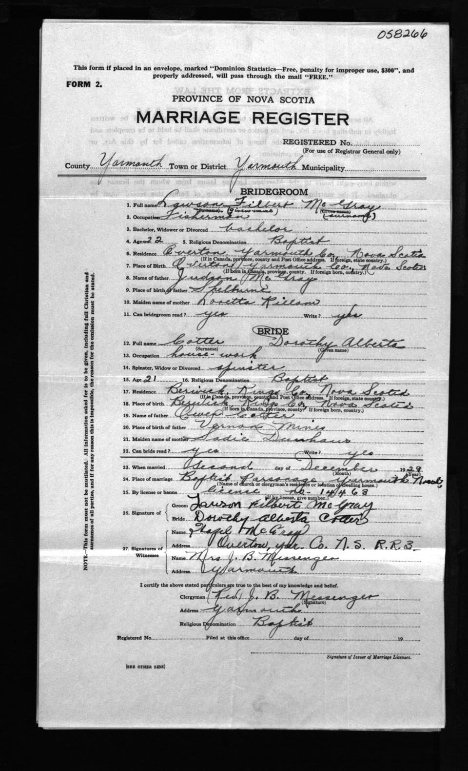Registration: Year: 1929 number: 58266