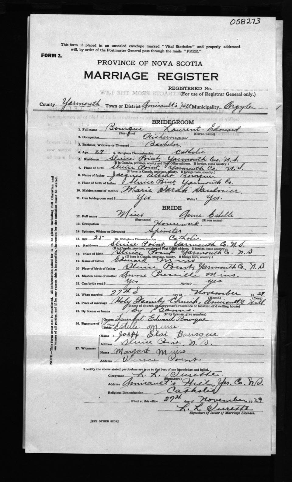 Registration: Year: 1929 number: 58273