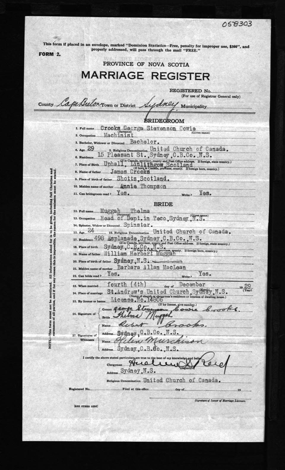 Registration: Year: 1929 number: 58303