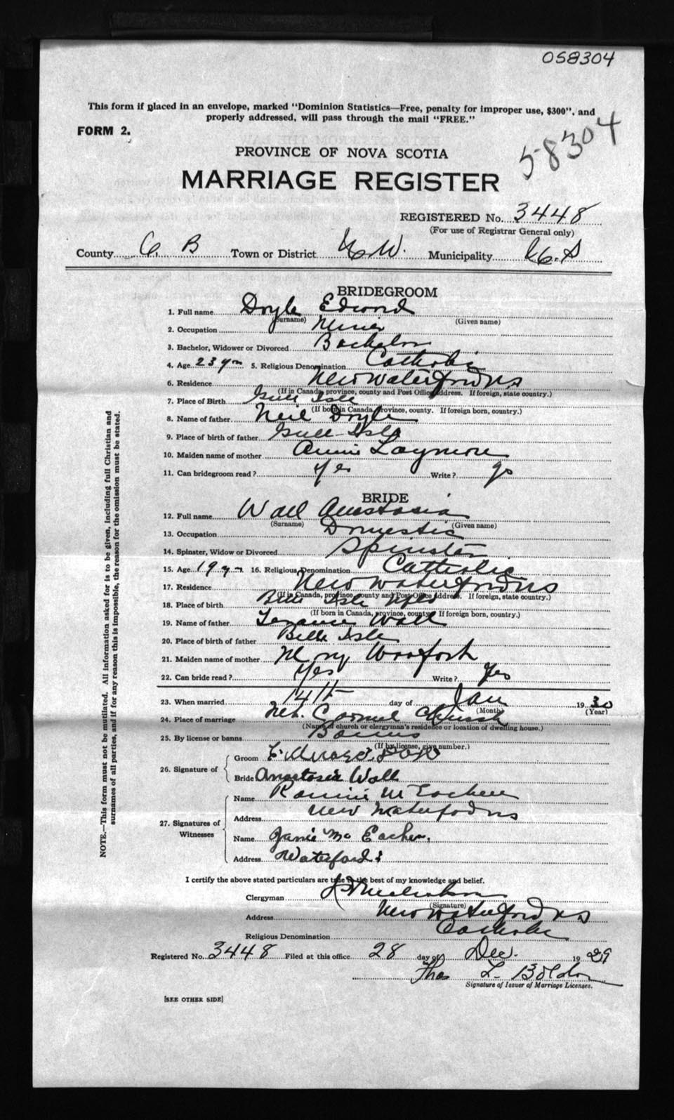 Registration: Year: 1929 number: 58304