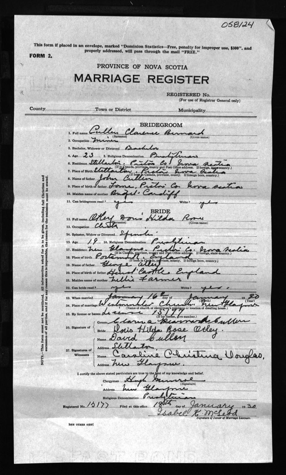 Registration: Year: 1930 number: 58124