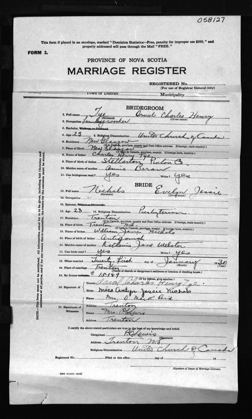 Registration: Year: 1930 number: 58127