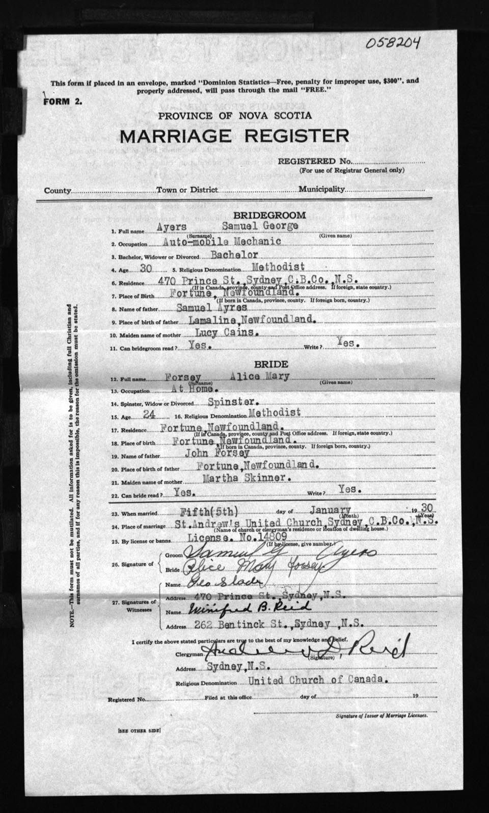 Registration: Year: 1930 number: 58204