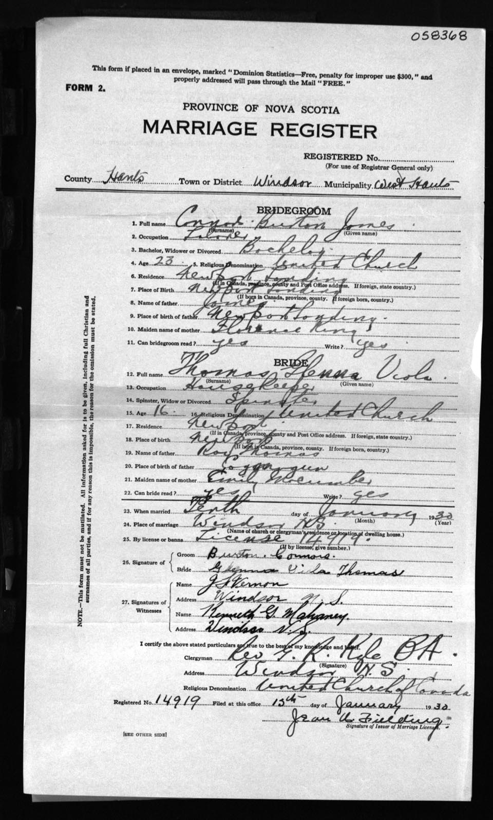 Registration: Year: 1930 number: 58368