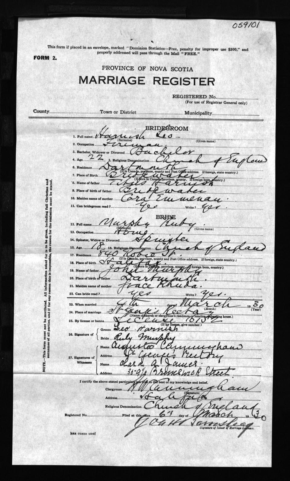 Registration: Year: 1930 number: 59101