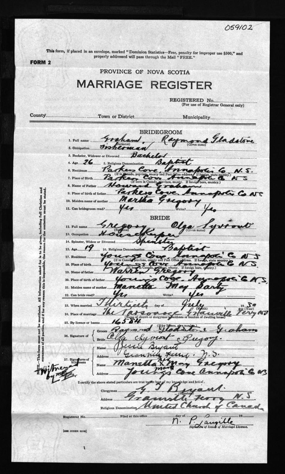 Registration: Year: 1930 number: 59102