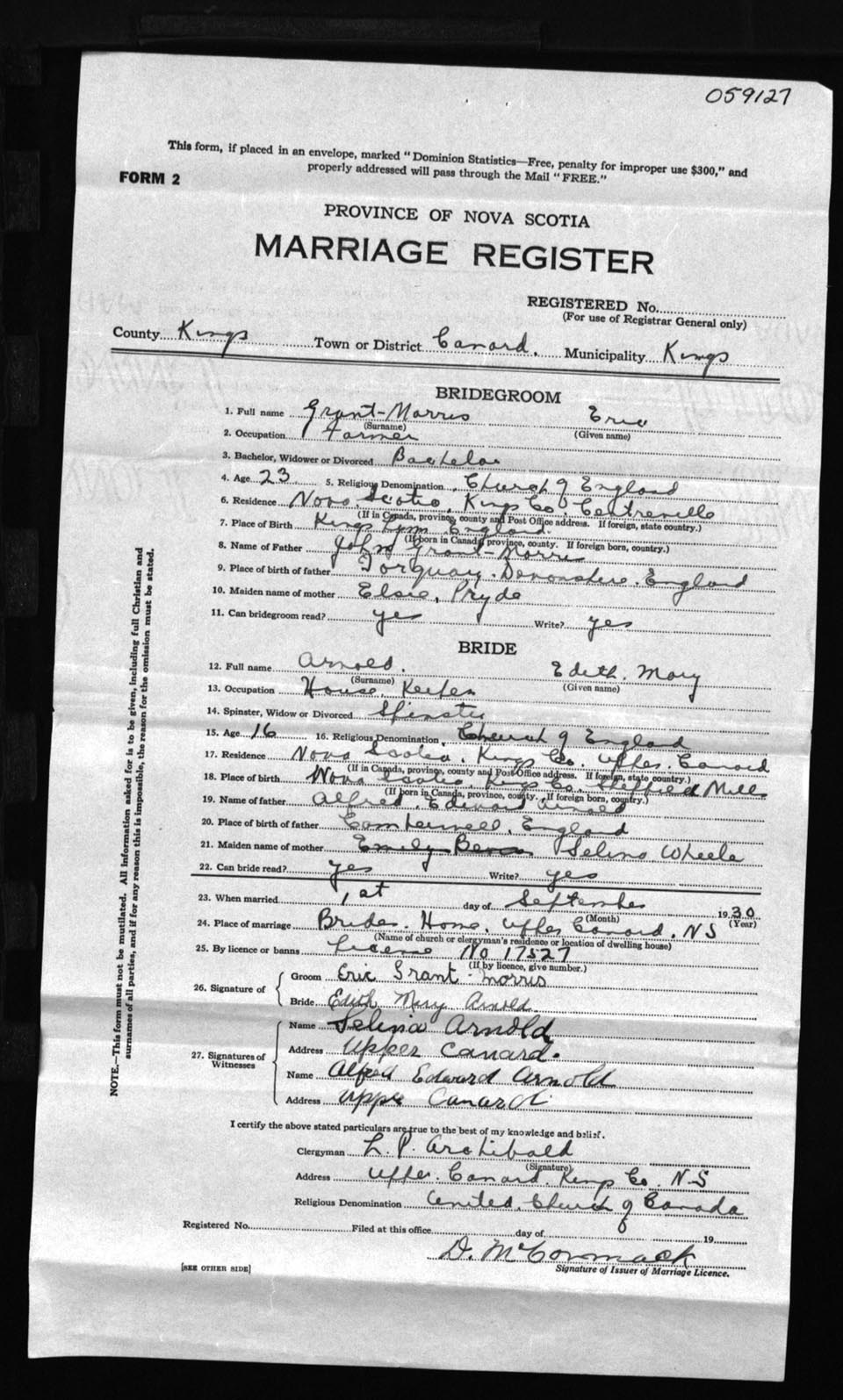 Registration: Year: 1930 number: 59127