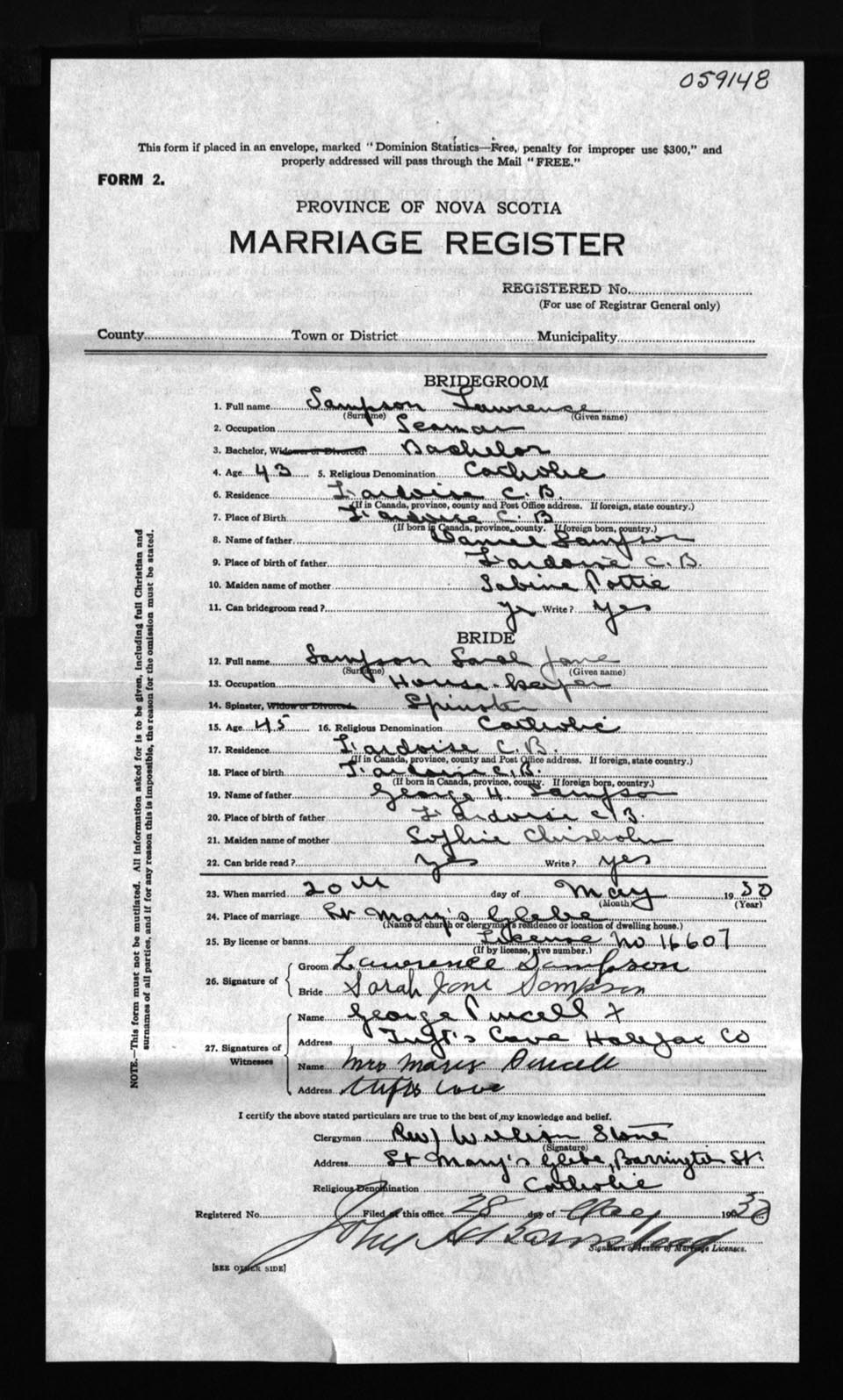 Registration: Year: 1930 number: 59148
